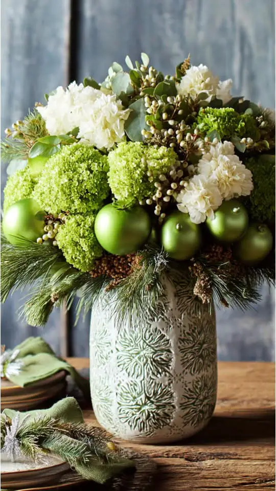 Fresh greens make holiday arrangements feel alive. I like to use pine, cedar, or fir for their vibrant color and scent. Adding green ornaments keeps the look festive yet natural.