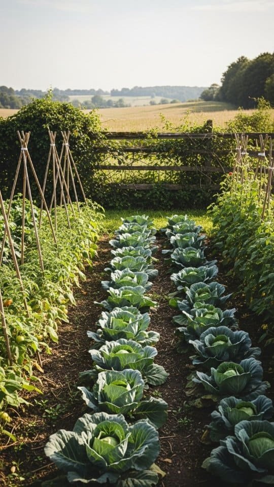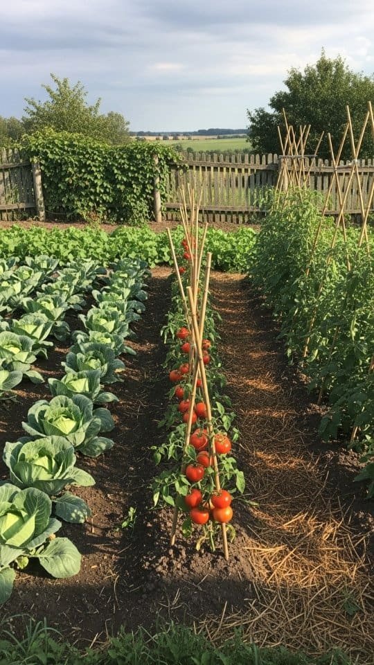 Tomatoes and cabbages grow best in warm sunlight. I like keeping rows neat to make weeding easier. Raised beds work well for this, especially if soil is tough or space is tight.