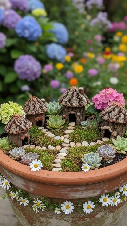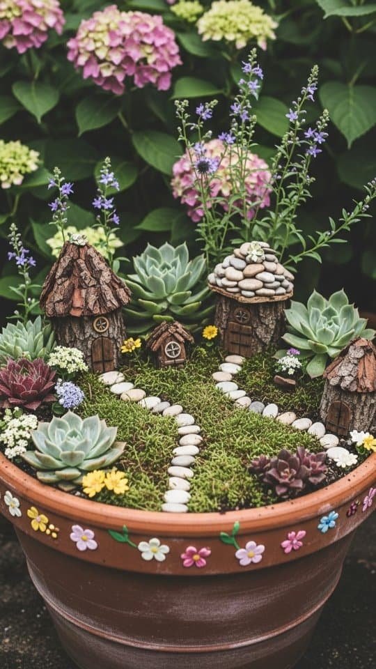 Rainbow designs or donut themes turn plain planters into beautiful garden art.