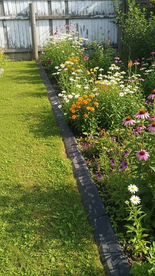 Using recycled rubber edging is another smart option; it’s eco-friendly and flexible for curves.