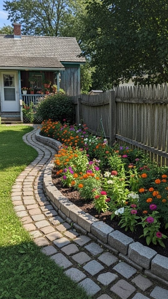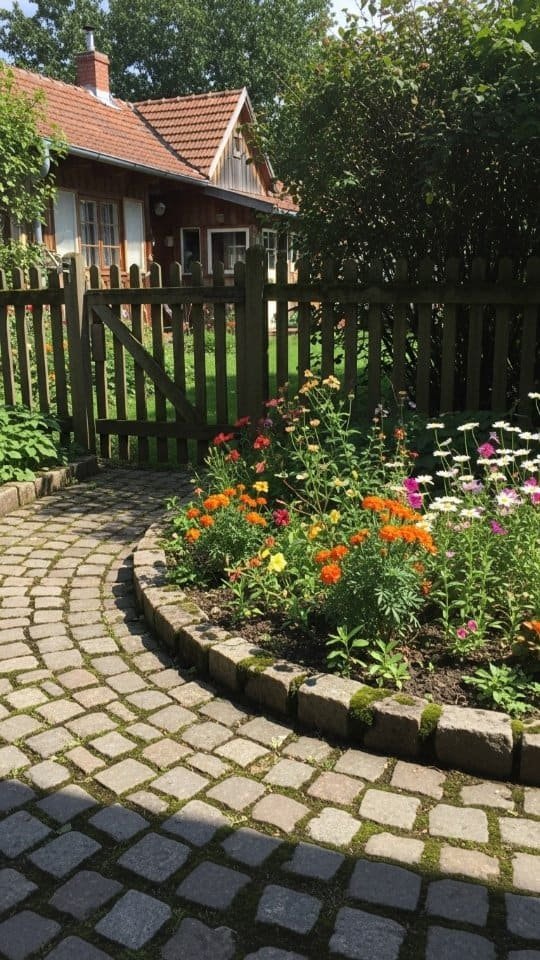 Curved cobblestones add a timeless touch to any garden. I enjoy how they outline beds, creating soft lines that feel natural yet elegant.