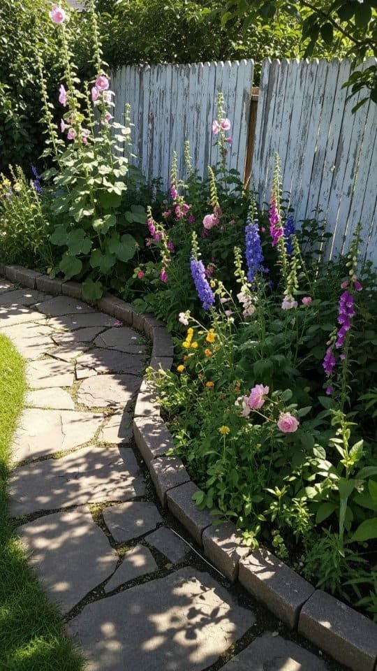 Flagstones add rustic charm, but decorative flower garden edging brings personality. I love how it turns plain borders into eye-catching frames.