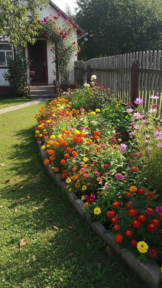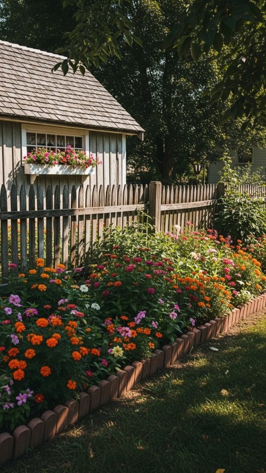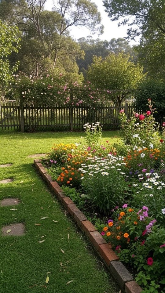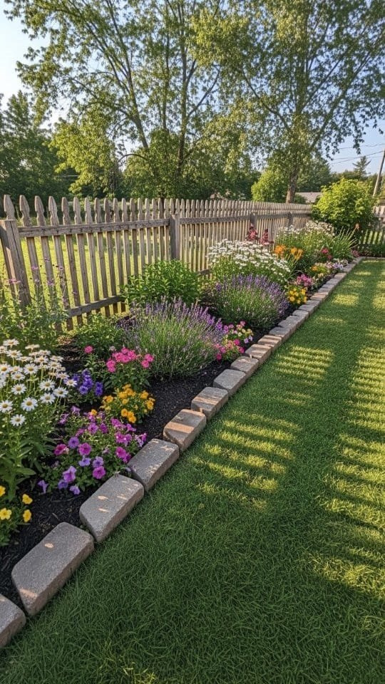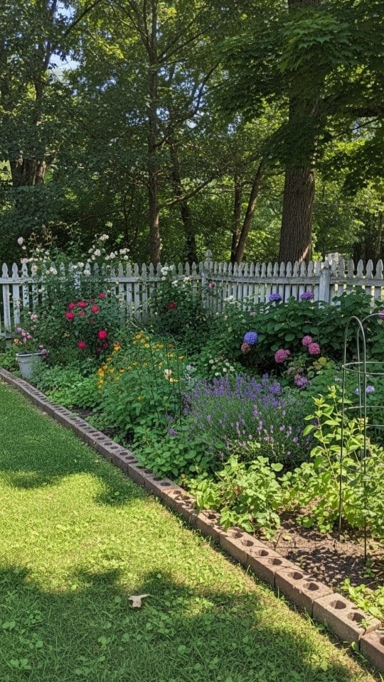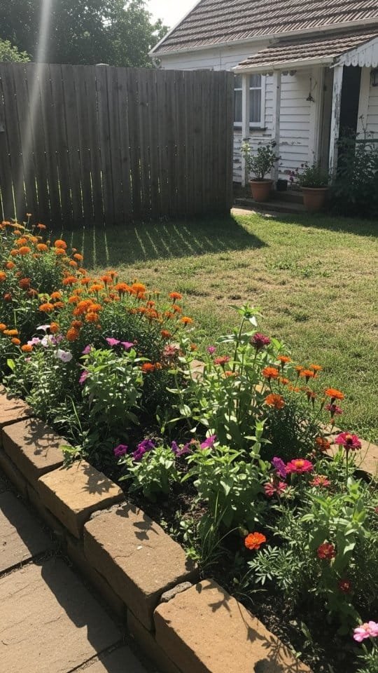 I like using bricks for garden edging. They make everything look neat and colorful. Stacked bricks create strong borders that keep grass from creeping into flower beds.