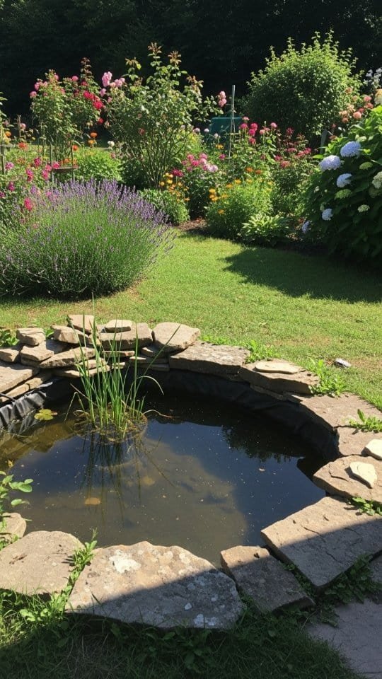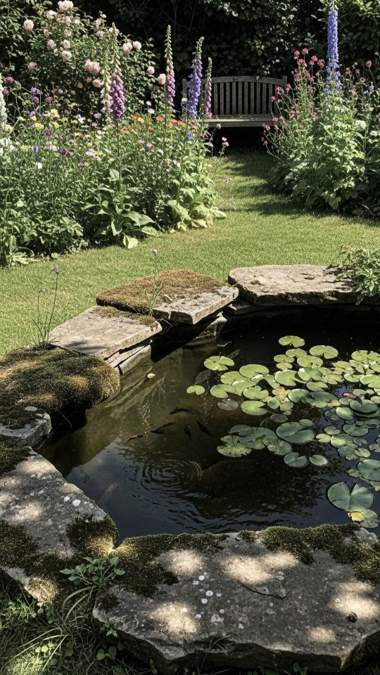 Natural stones like pebbles and rockery fit perfectly around ponds. They blend well with plants, making the area feel calm and natural.