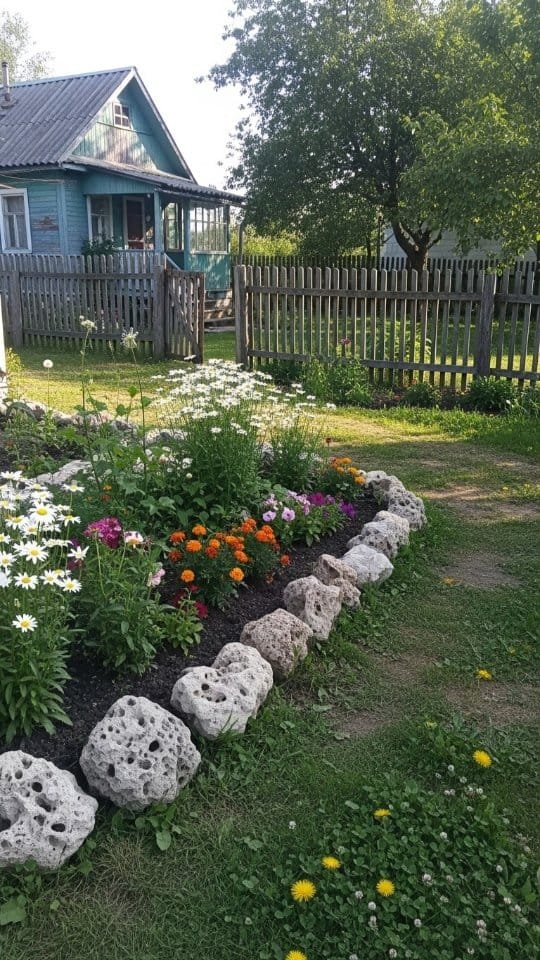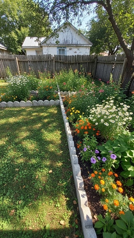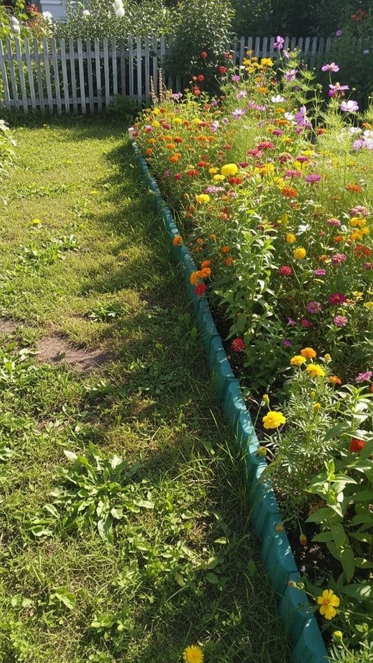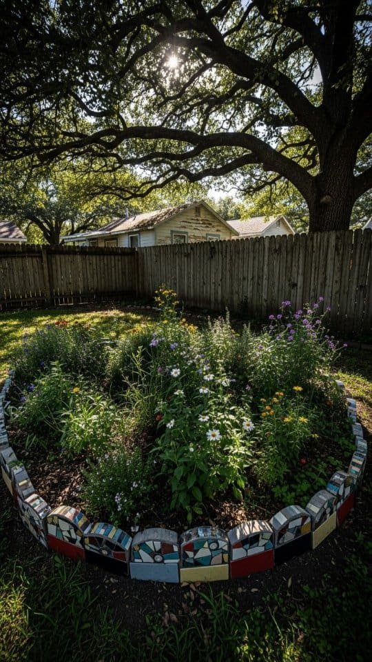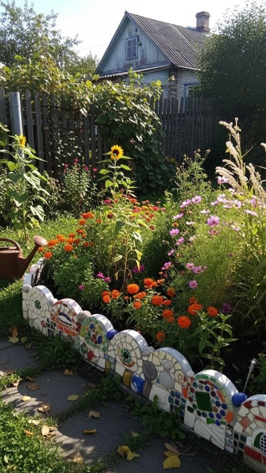 I love using mosaic garden edging to make my borders vibrant. Broken tiles or mosaic pieces work well for this. I’ve seen floral designs and geometric patterns that look so artistic.