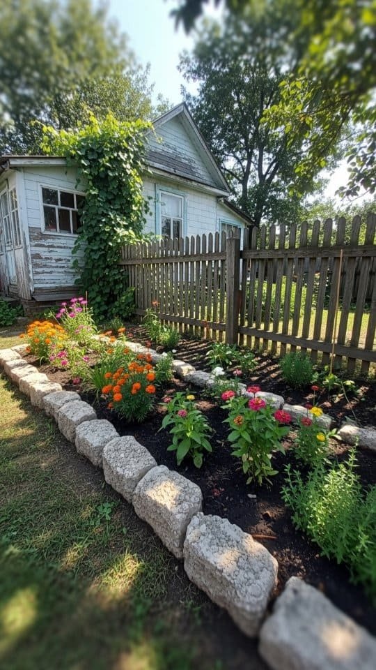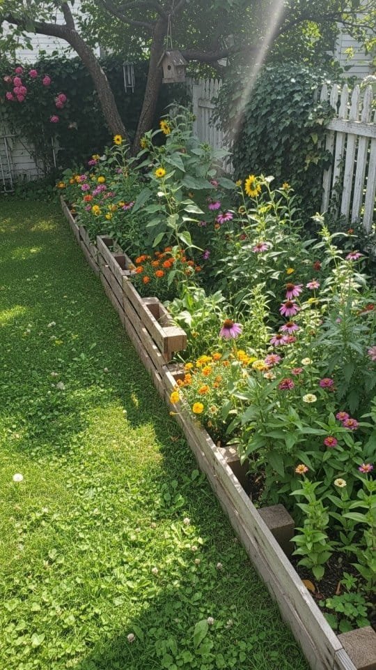 Using old pallets creates rustic charm. I love how easy they are to repurpose into garden borders. The wood adds texture while keeping it eco-friendly.