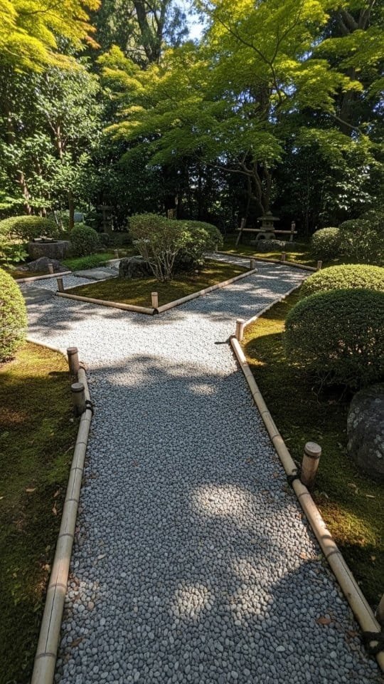 Using bamboo or rough branches also brings charm to spaces filled with flowers and shrubs. It’s simple but adds warmth.