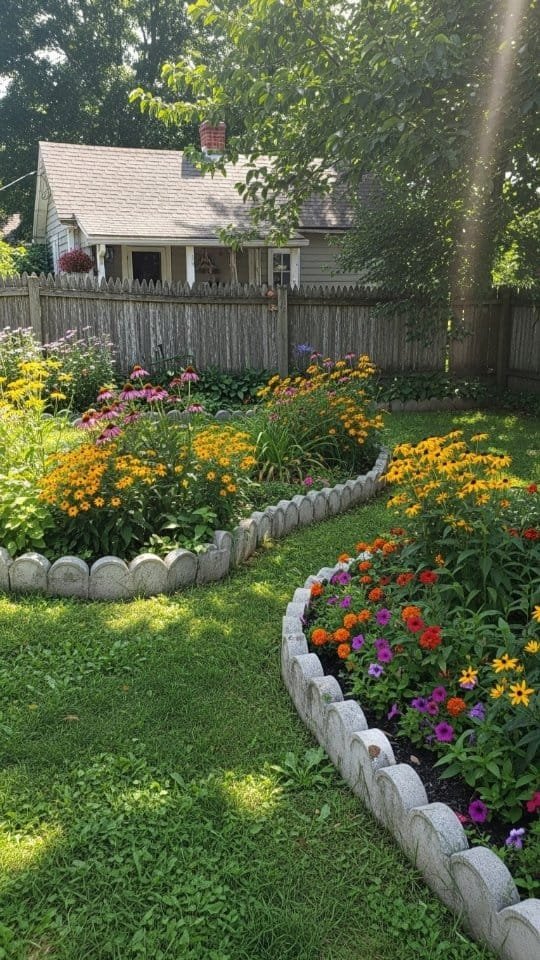Curved garden edging adds a soft, natural look to any space. It helps create smooth transitions between flower beds and pathways.