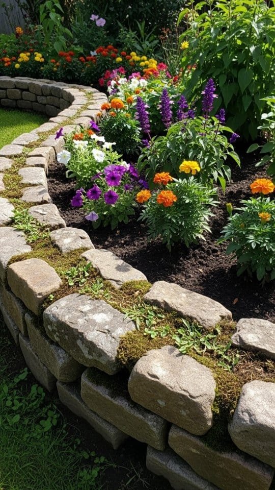 Stone edging adds natural beauty to a garden. I like how it creates clean lines and helps keep soil and mulch in place.