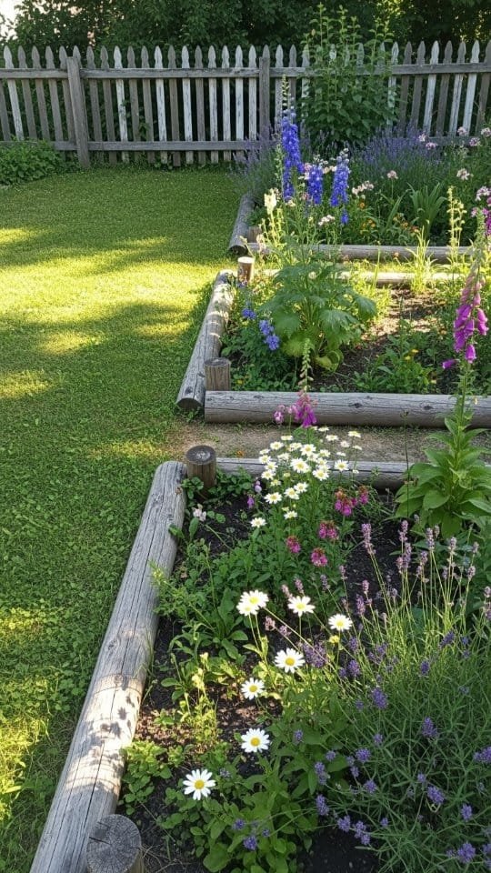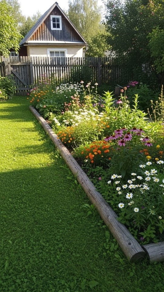 Natural stones create timeless borders, but timber brings warmth and simplicity. I love using solid wood for garden edging. It adds charm while supporting raised beds.