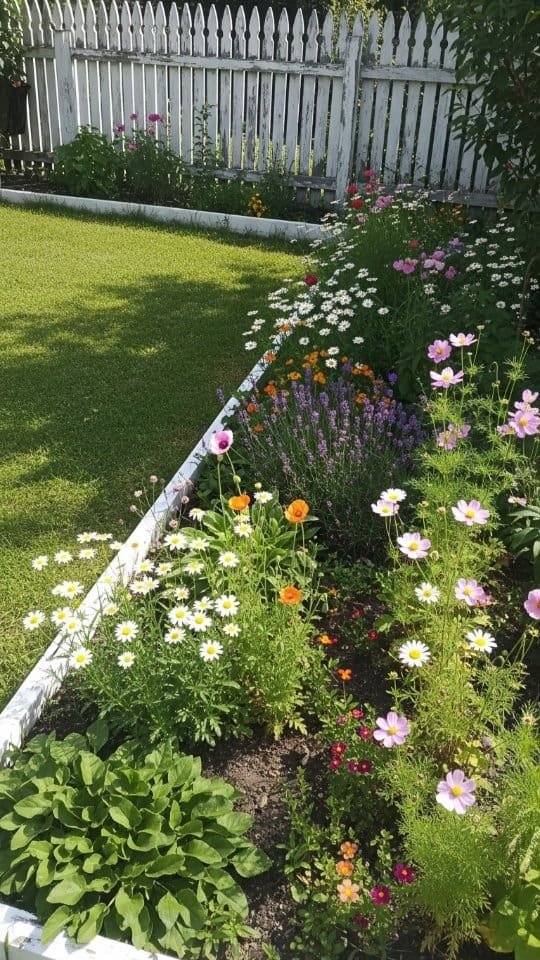 White borders bring gardens to life. They add a crisp, clean look that pops against green plants. These edges give flower beds and slopes structure, making everything feel tidy.