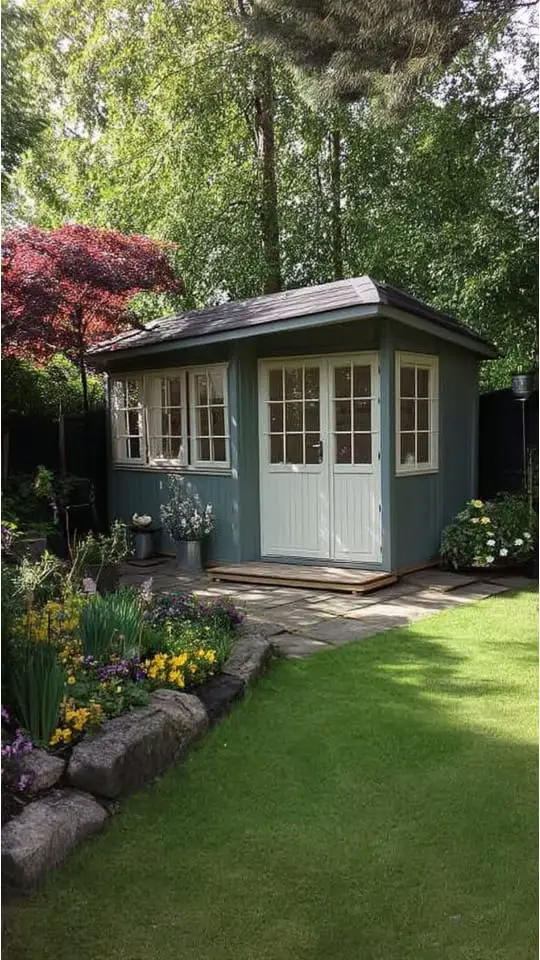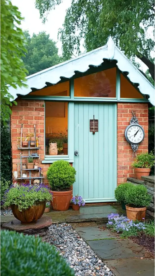 Bold shades like teal or coral help the shed stand out in your space. Soft pastel tones bring calm vibes that blend with the greenery around it.