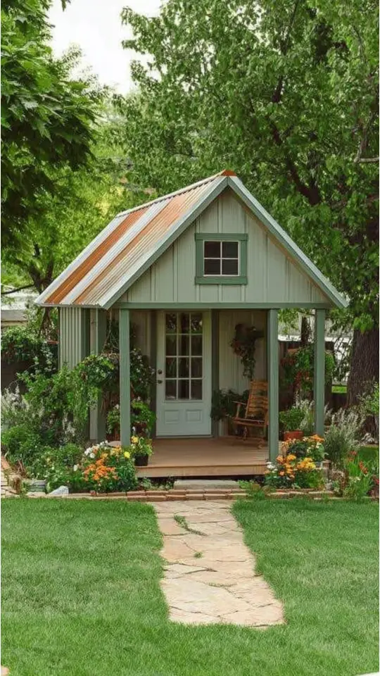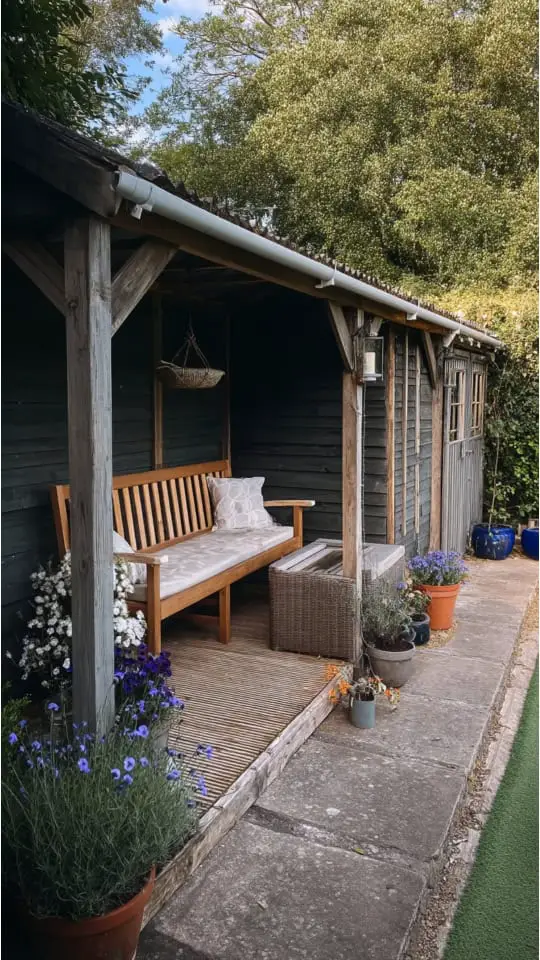 A garden shed with a porch feels like a mini escape. I love how it blends storage and relaxation in one space.