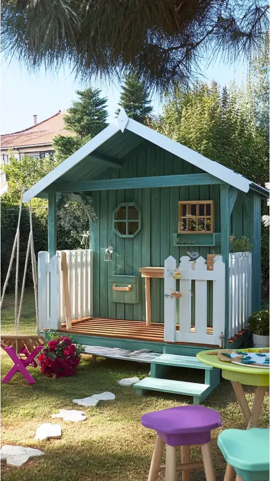 Letting kids help decorate their playhouse encourages creativity and ownership of their mini retreat!