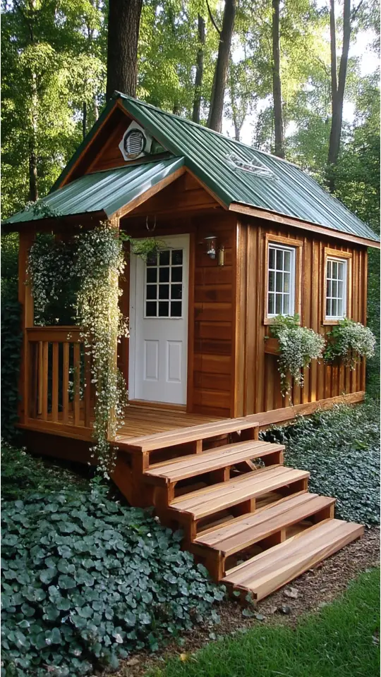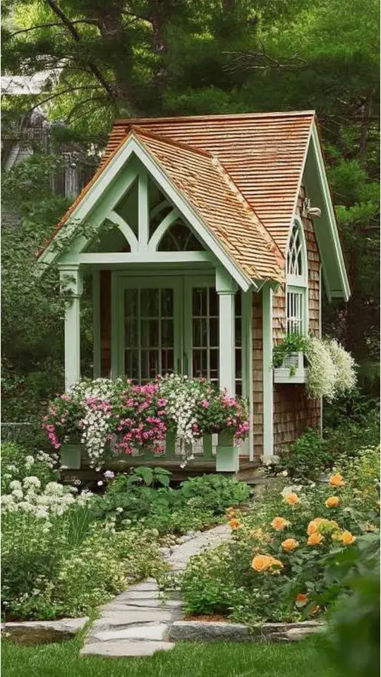 A cute garden shed covered in flowers feels like a dream come true. The bright blooms create an inviting and cheerful space. I love decorating mine with window boxes filled with colorful plants.