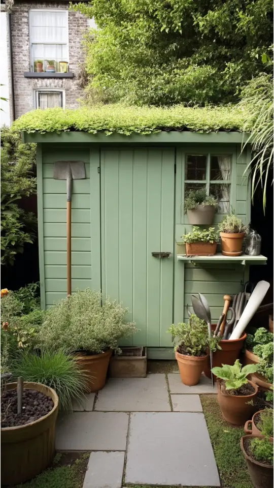 Sometimes I see sheds like this with living roofs covered in moss or tiny blooms. It’s such an easy way to connect storage space with nature.