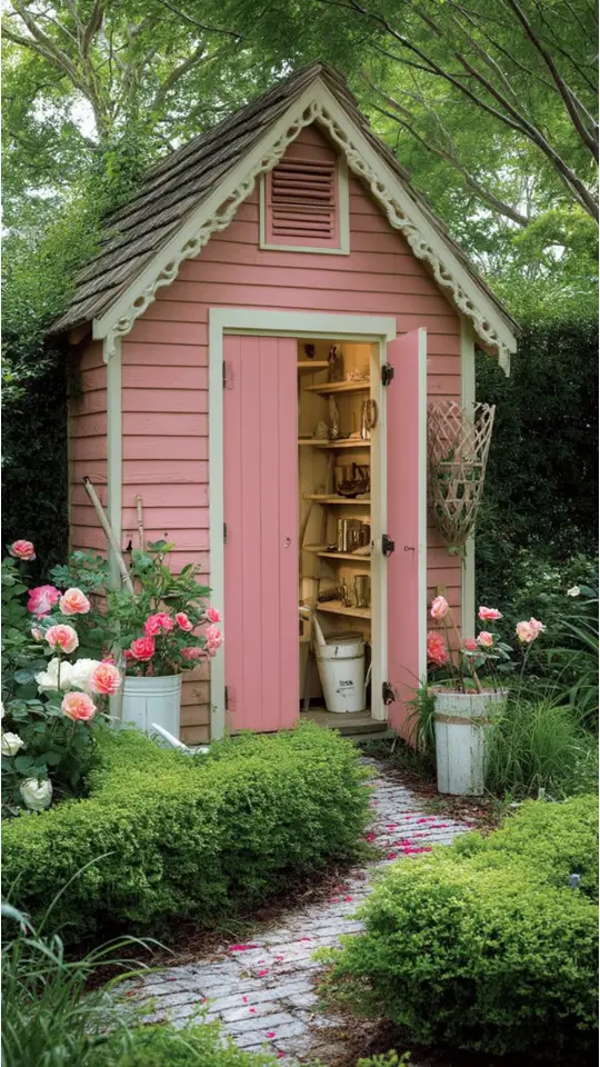 I think small decorative trims add personality too! This shed isn’t just practical but brings beauty to any garden setting.
