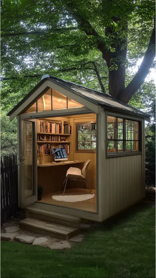 This shed isn’t just for storing pots; it can be more—a quiet office or a personal reading hideaway that feels like home!