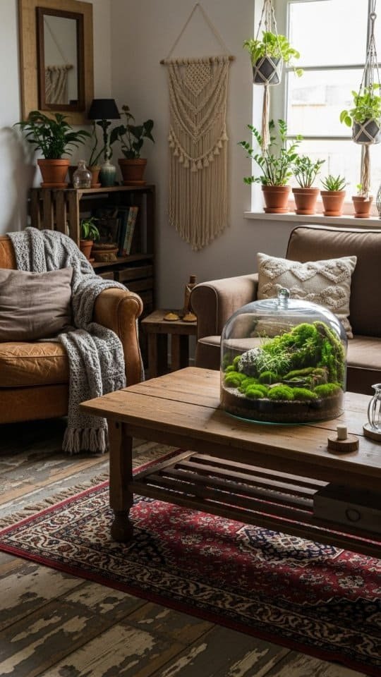 Using vertical walls for living rock art is another idea I enjoy. Moss and tiny plants fixed on wood panels bring freshness indoors. This setup works in modern or rustic spaces with ease.