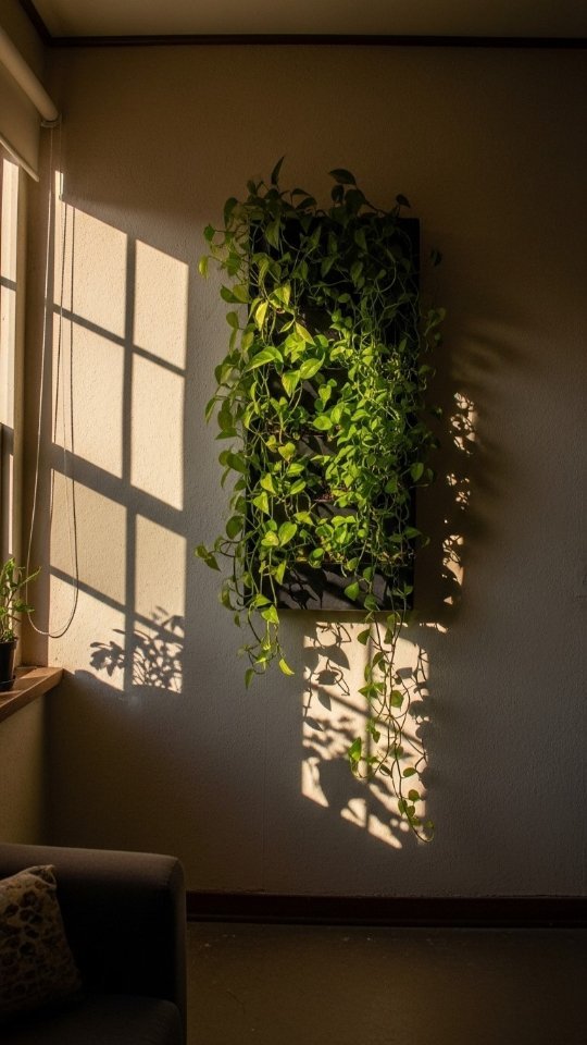 Use vertical gardens or wall-mounted planters to save floor space. Place plants on shelves, windowsills, or in corner stands to make the most of your area.