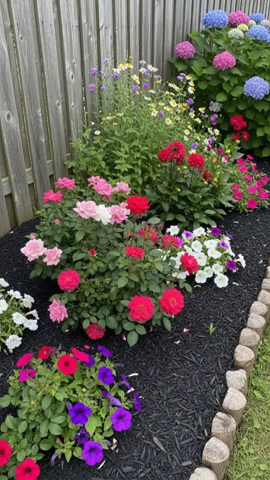 Sometimes, I pair these beds with white picket fences for extra charm. This setup suits both formal and informal gardens. For more ideas, let’s explore the beauty of the Black Mulch Flower Bed.