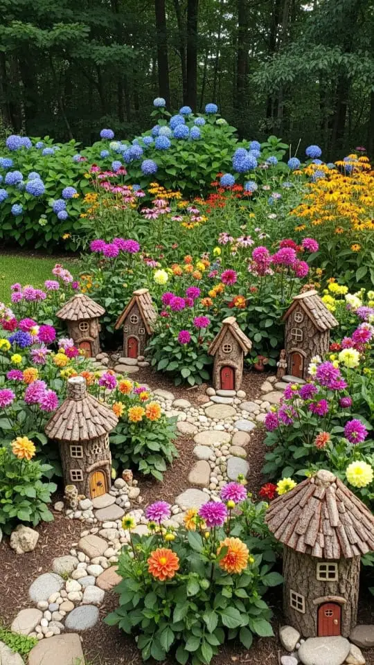 Mini fairy houses bring charm to any flower bed. I love nestling them between bright dahlias and other colorful blooms, like marigolds and lavender.