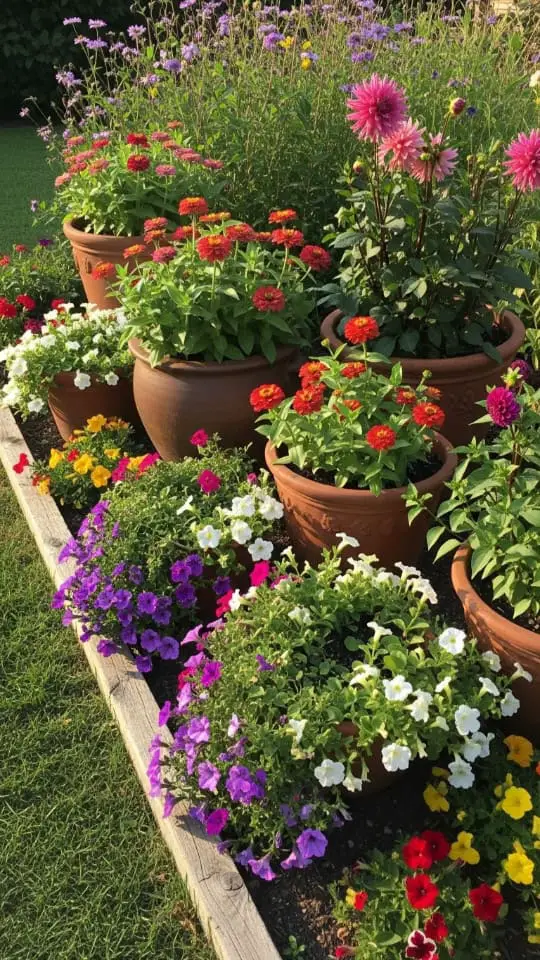 Flower pots with drainage holes work great for this setup. I use black-eyed Susan or ageratum for pollinators nearby too. Mixing annuals with summer-blooming perennials keeps the color going all season!