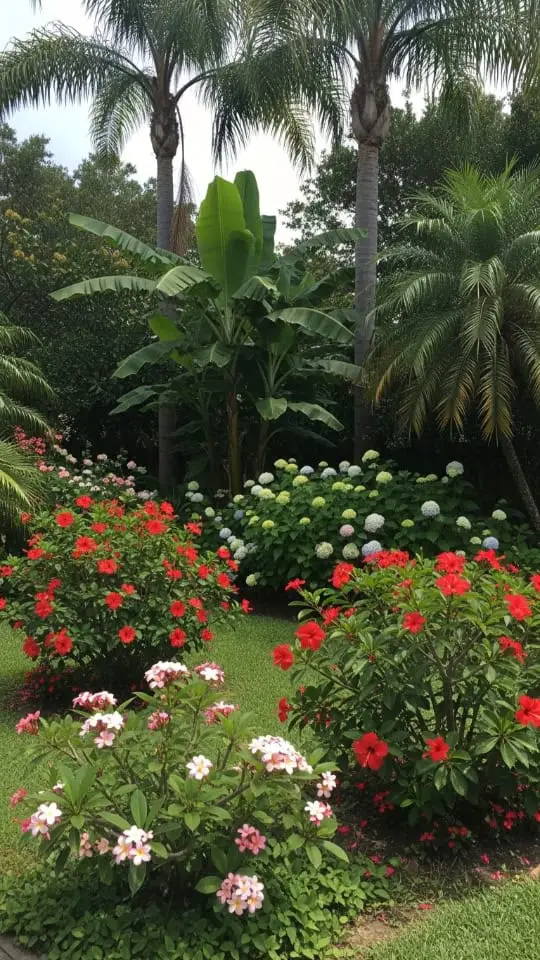 A touch of garden art can tie this look together beautifully, adding whimsy to the tropical theme.