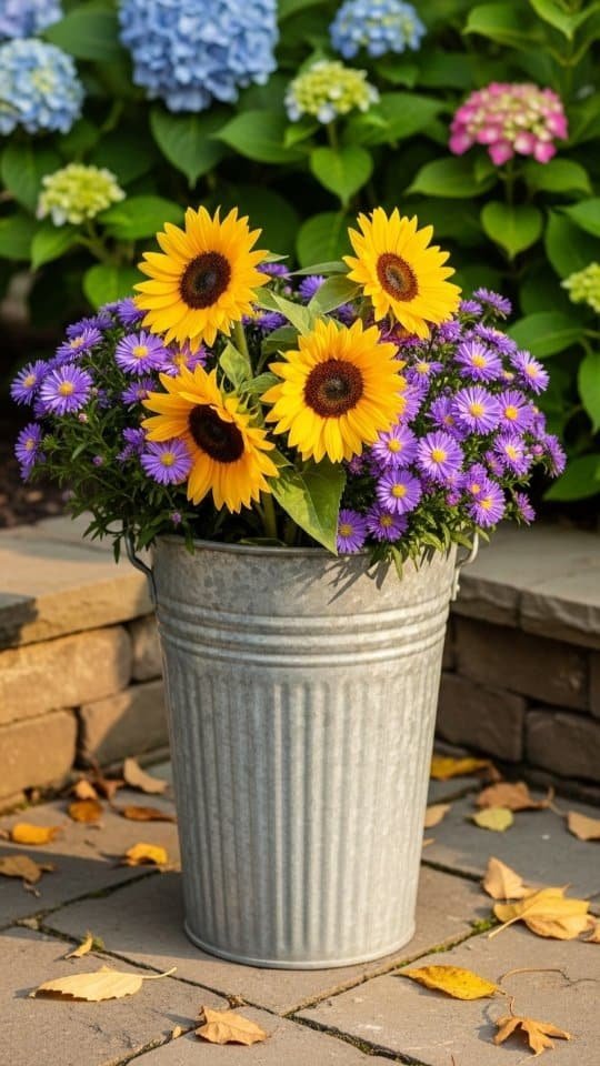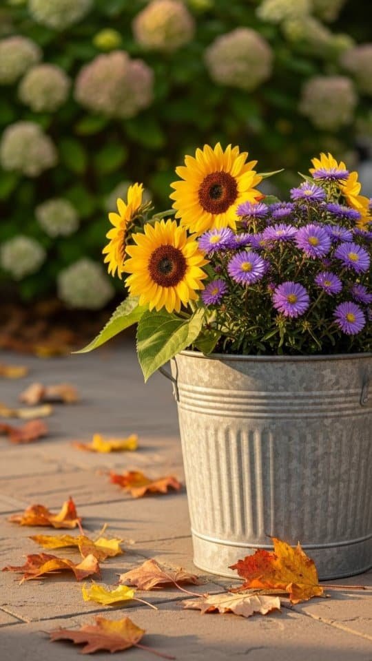 Daisies look stunning in stone pots, but autumn offers something magical. I switch to fall flowers for vibrant outdoor displays. Plants like Skyfall mums and trailing ivy add depth to my planters.