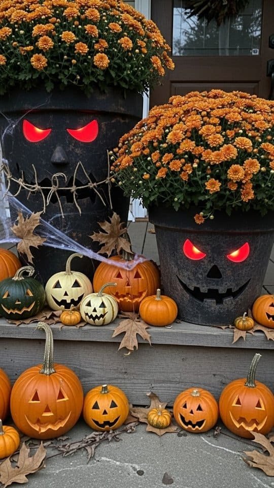 To add a creepy touch, I place battery-operated lights inside to glow like eerie red eyes at dusk. It’s easy and looks amazing on any porch.