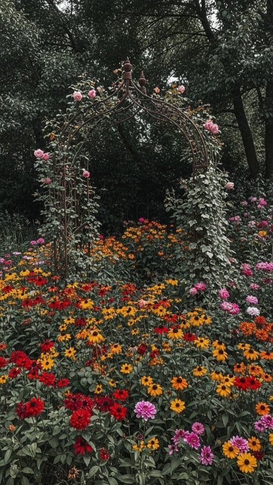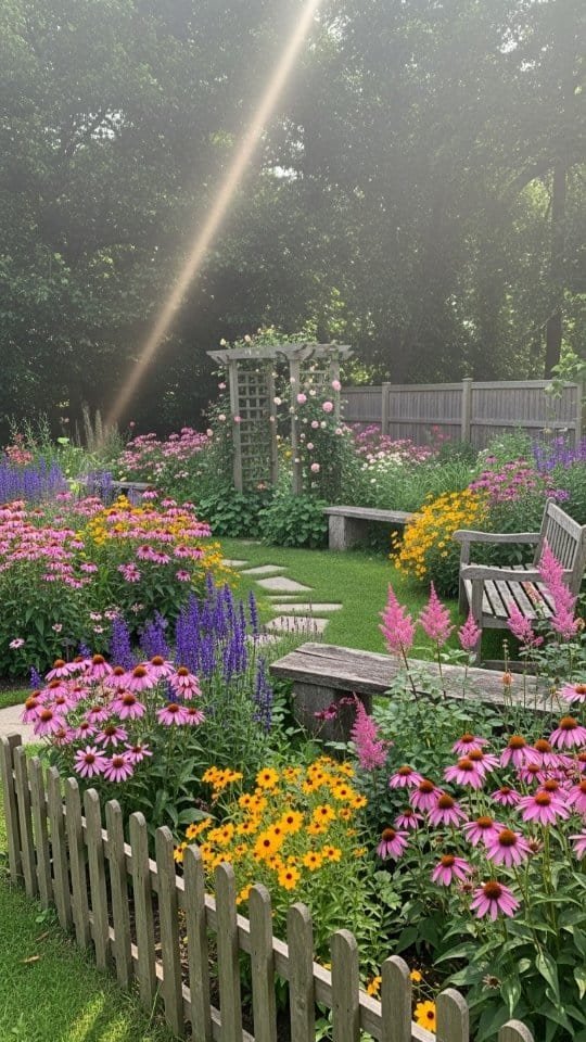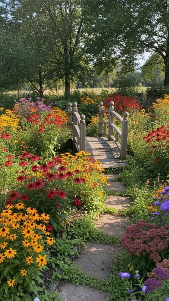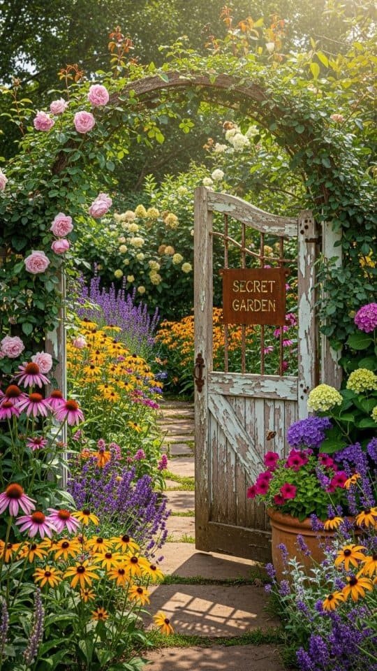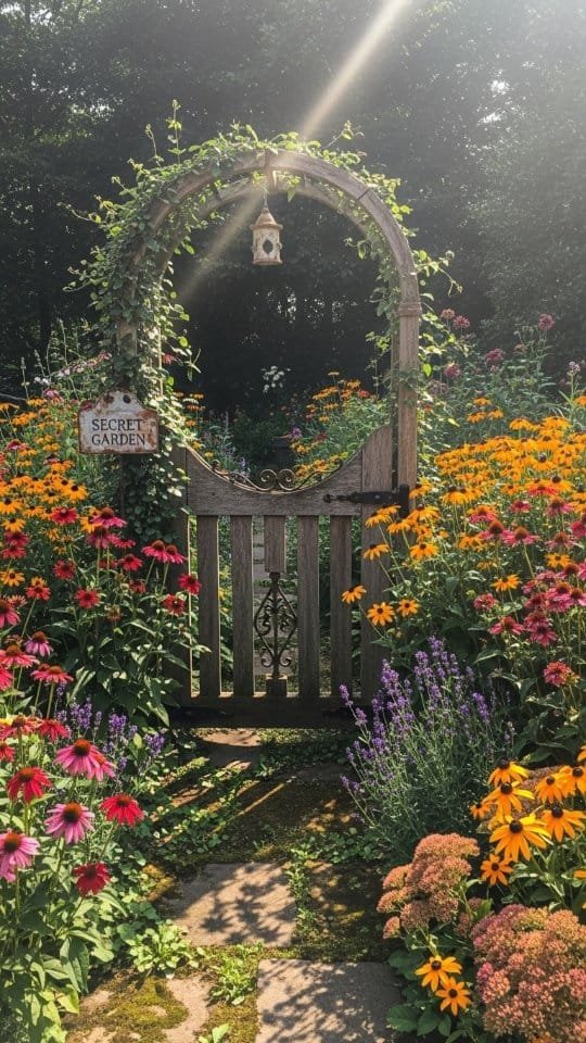 A garden gate framed by perennial flowers feels magical. I love how blooms like Black-Eyed Susan and Astilbe add charm. Bright Asters and Asiatic Lilies create a stunning border too.