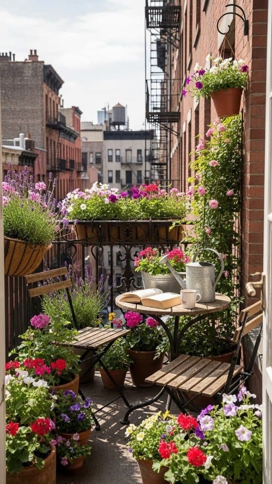 Bright flowers make any balcony feel cozy and happy. I like planting purple coneflowers, day lilies, and lavender in small pots. These bloom all summer and need little care if placed in the sun.