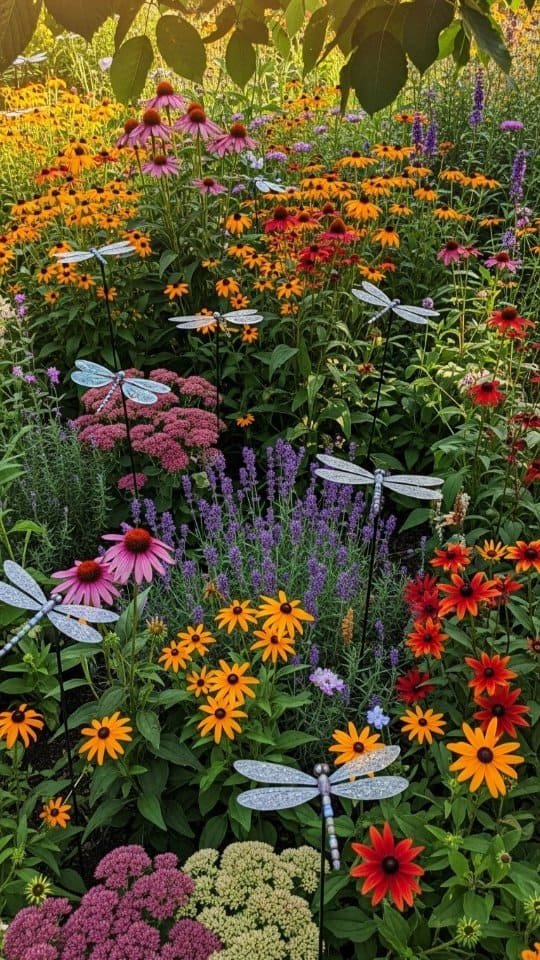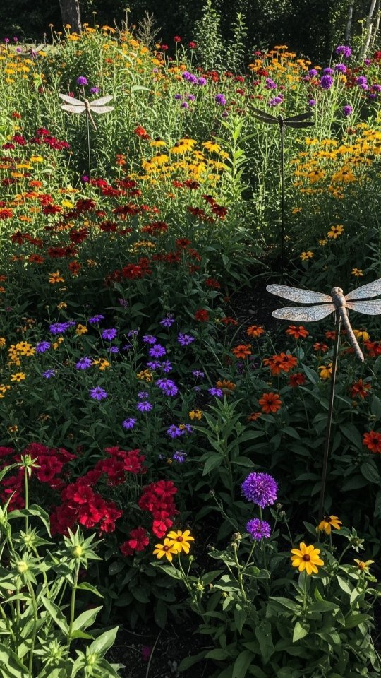 I enjoy pairing bright flowers like daylilies or Russian sage with these decorations. Dragonflies seem to float above the blooms, creating charm while helping control pests naturally.