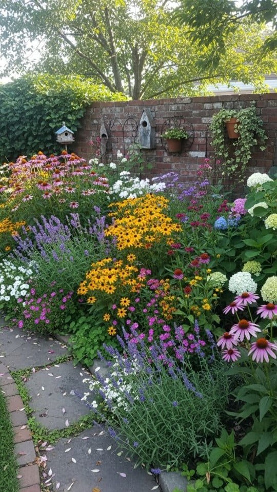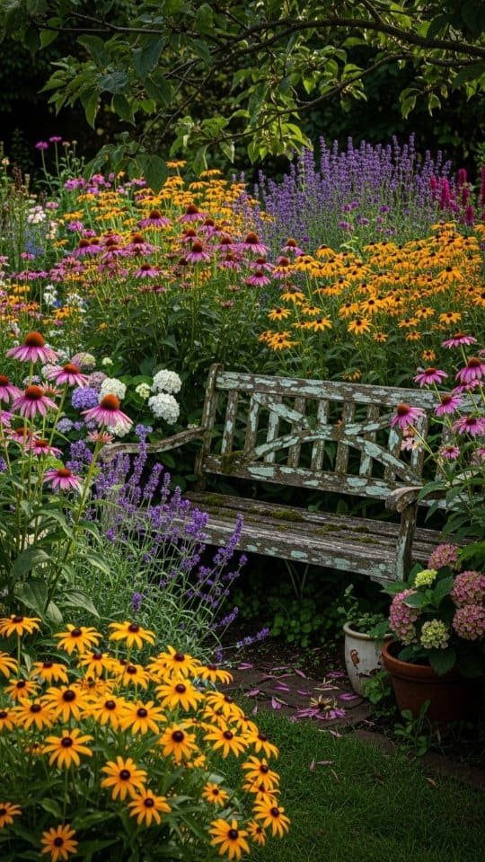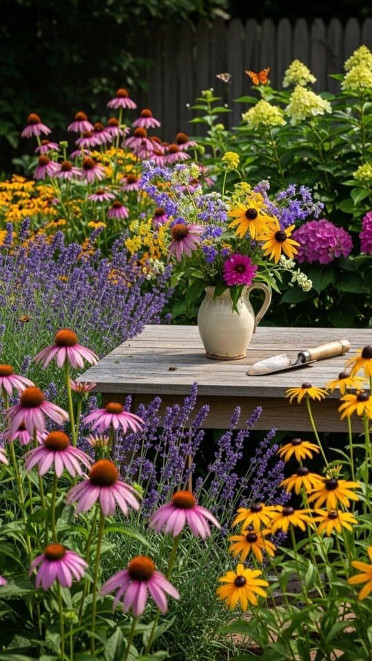 I love adding vintage charm to my garden with perennial flowers. Shasta daisies and coneflowers are perfect for this style. They grow bigger each year, making the space look lush and timeless.