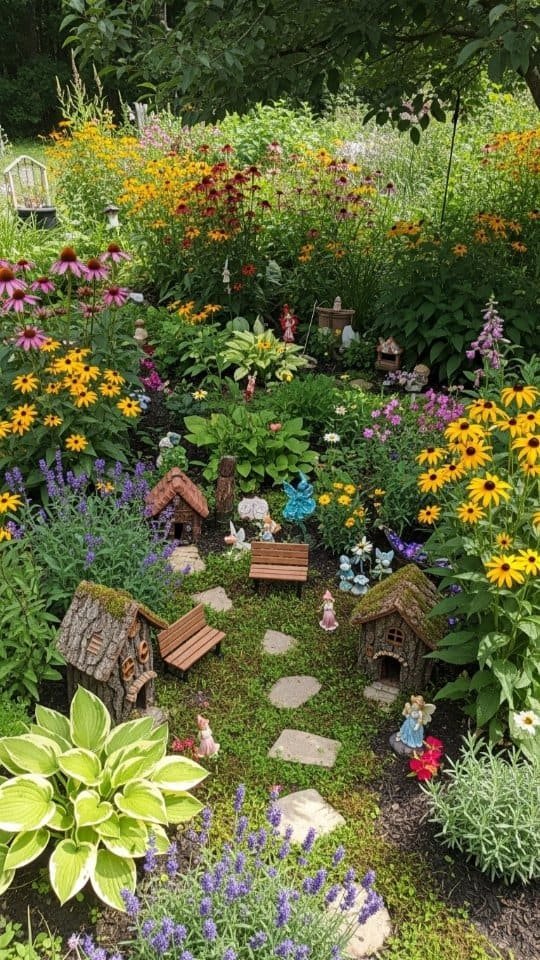 I created a tiny fairy garden with blooming perennial flowers. Small plants like creeping thyme and Irish moss made perfect ground covers. They gave the space a lush, magical look.