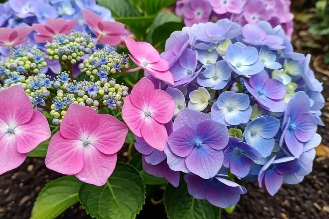 Hydrangea colors depend on soil pH and nutrients. Certain types can shift from pink to blue with the right conditions.