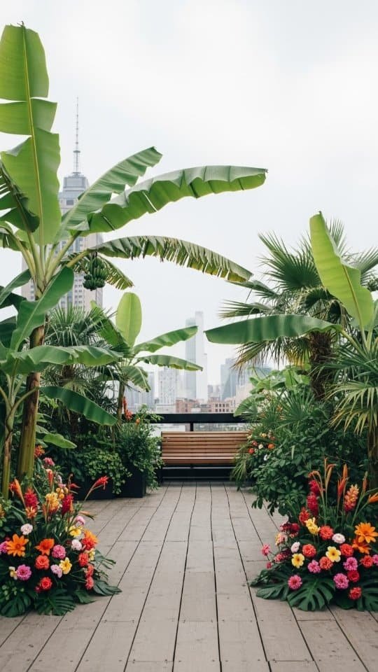 Next, explore ideas with vibrant rooftop gardens spilling over with tropical plants…